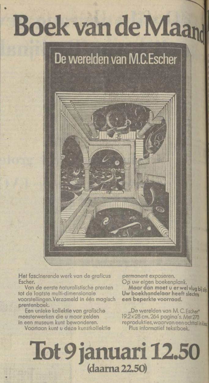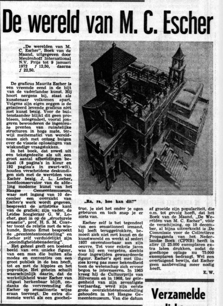 Een dag na Eschers overlijden op 27 maart 1972 verscheen de herdruk van De werelden van M.C. Escher.