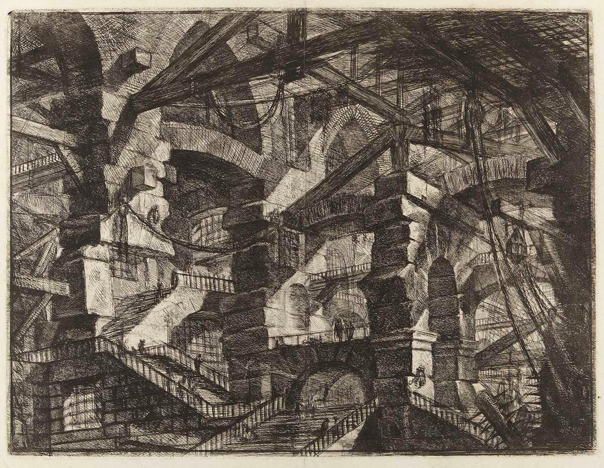 Piranesi’s Carceri d’ Invenzione (Imaginaire kerkers) is zijn magnum opus. Hij begon hiermee in 1745 en publiceerde een eerste serie van 14 etsen in 1750. Een groot succes was die uitgave niet, maar toen hij ze in 1761 opnieuw uitbracht was dat anders. Voor de nieuwe editie, aangevuld met twee nieuwe gravures, had hij elke etsplaat opnieuw bewerkt. Hij had extra details toegevoegd en het licht-donkercontrast verhoogd, waardoor het dramatische effect veel verder was versterkt. Deze tweede serie werd enorm populair en groeide uit tot een icoon van de prentkunst.