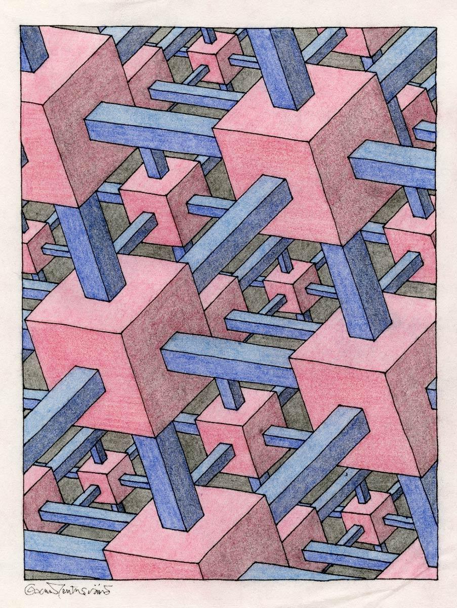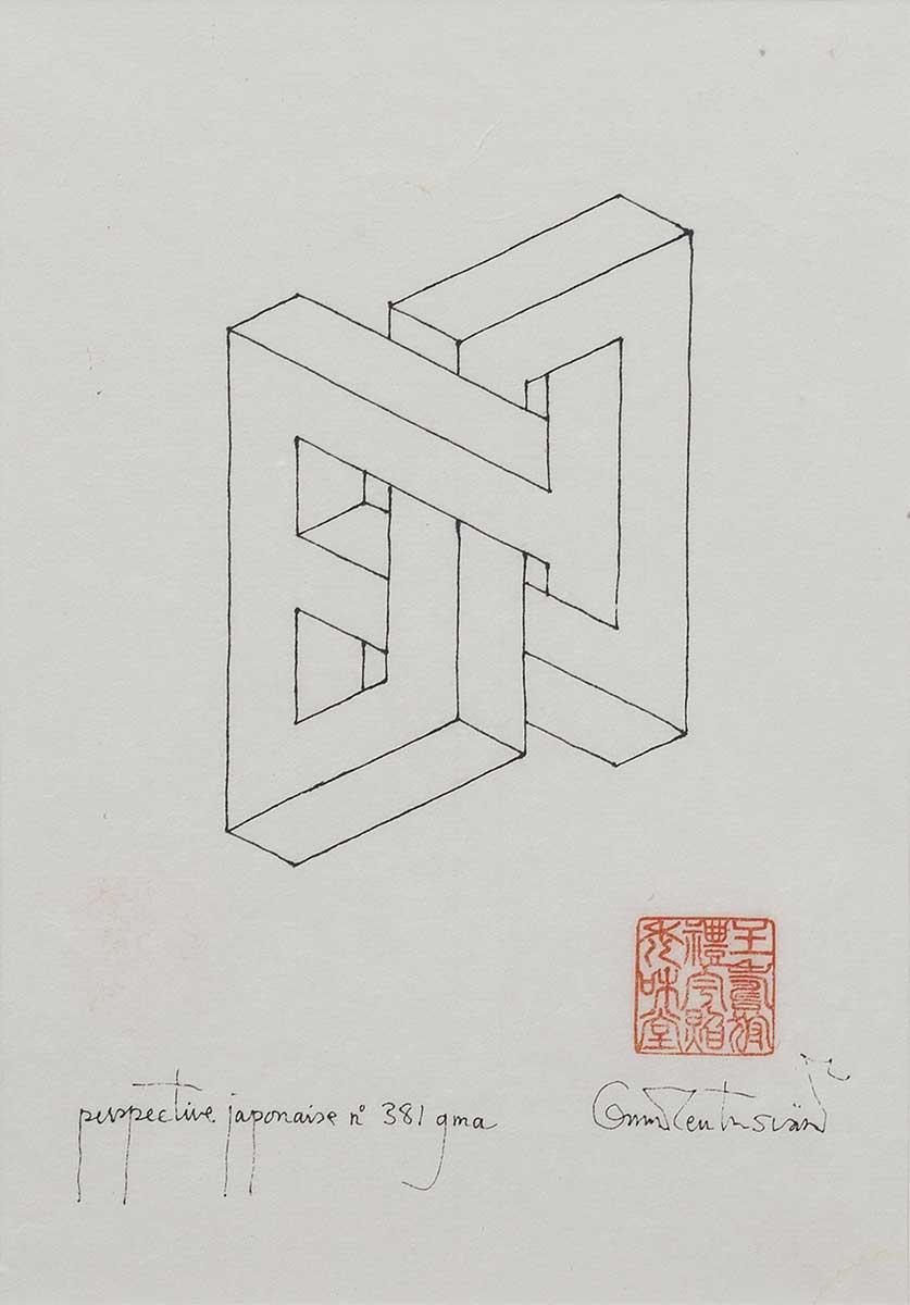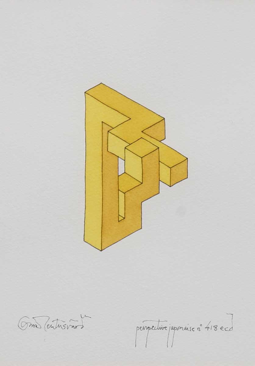 Ook Reutersvärd was overigens niet de eerste die het oog (en daarmee het brein) voor de gek hield. De bekendste voorganger is William Hogarth (1697-1774), die al in 1754 een gravure maakte waarin hij liet zien dat perspectieftrucs de kijker helemaal op het verkeerde been kunnen zetten. Ook Giovanni Battista Piranesi paste in zijn Carceri d’Invenzione dergelijke trucs toe om het duizelingwekkende effect te vergroten. Hij verborg ze echter in een wirwar van muren, trappen en doorkijkjes waardoor hun ‘onmogelijkheid’ niet direct opvalt. In de vorm van trompe-l’œils bestonden optische illusies ook daarvoor overigens al lang. Maar Reutersvärd was de eerste die zich zo consequent met deze vormen bezig zou gaan houden. Hij past daarin steeds dezelfde isometrische projectie toe, waarbij de perspectieflijnen evenwijdig lopen en elkaar niet raken in het verdwijnpunt. Zijn vormen (het aantal loopt in de duizenden) zijn altijd sec getekend, zonder extra figuren of decoraties. Daarmee koos hij voor een andere aanpak dan Escher die zijn onmogelijke vormen verborg in een zo realistisch mogelijk ogende situatie.