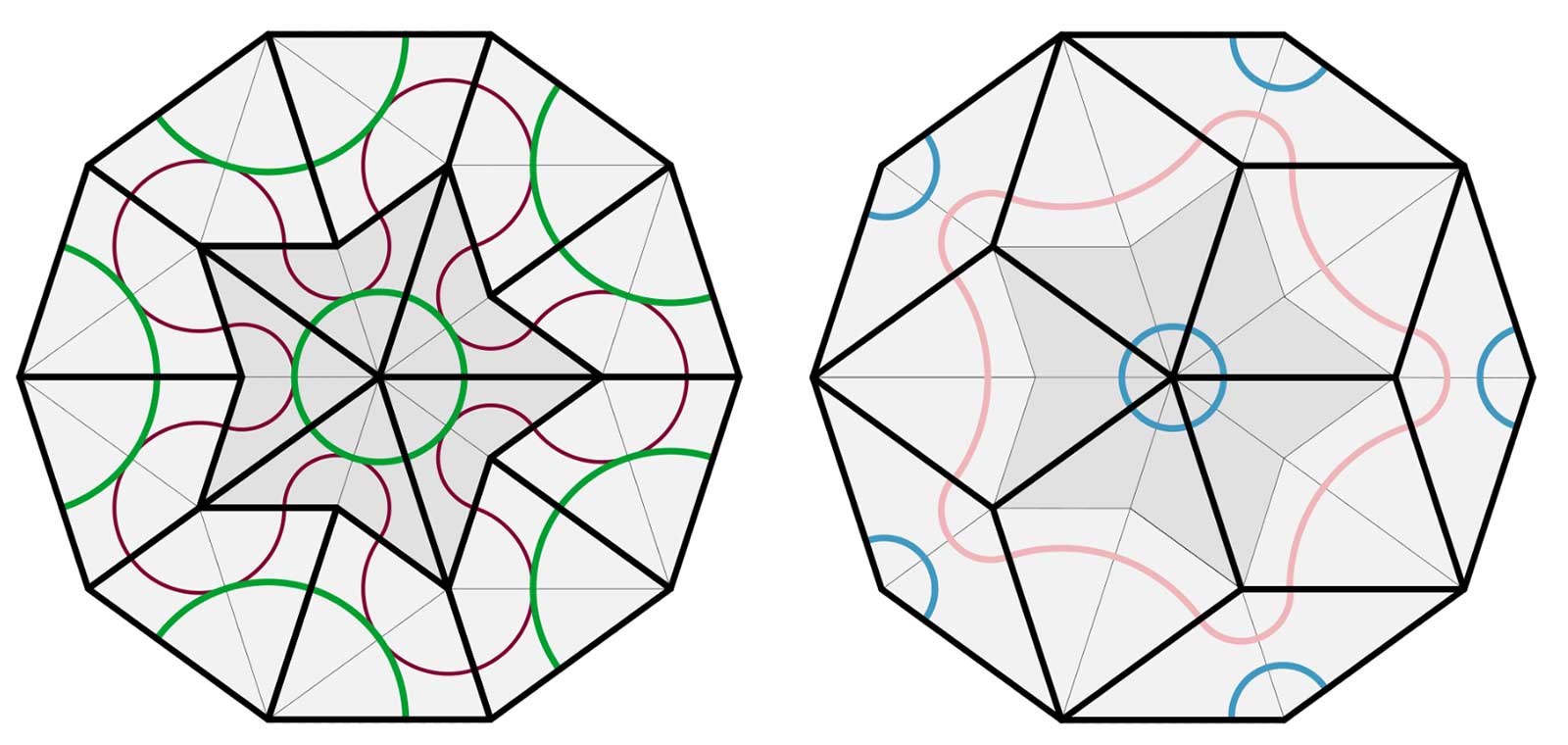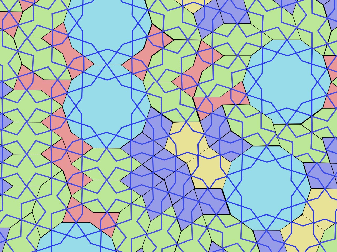 Onderzoekers Lu en Steinhardt ontdekten in de Islamitische patronen vijf verschillende tegels. Deze ‘Girih tegels’ (Girih betekent letterlijk ‘knoop’) zaten waarschijnlijk in de gereedschapskist van elke vakman die destijds aan de gebouwen werkte. Een ruit, een strikje, een regelmatige tienhoek, een regelmatige vijfhoek en een niet-regelmatige zeshoek. Met de Girih tegels zijn zowel periodieke als a-periodieke vlakverdelingen te leggen. Alle zijden van deze vijf tegels zijn precies even lang. Deze tegels kunnen opgevuld worden met tegels van dezelfde vorm, die allemaal met dezelfde factor verkleind zijn. Op die manier konden ze de wonderlijkste configuraties in elkaar passen.