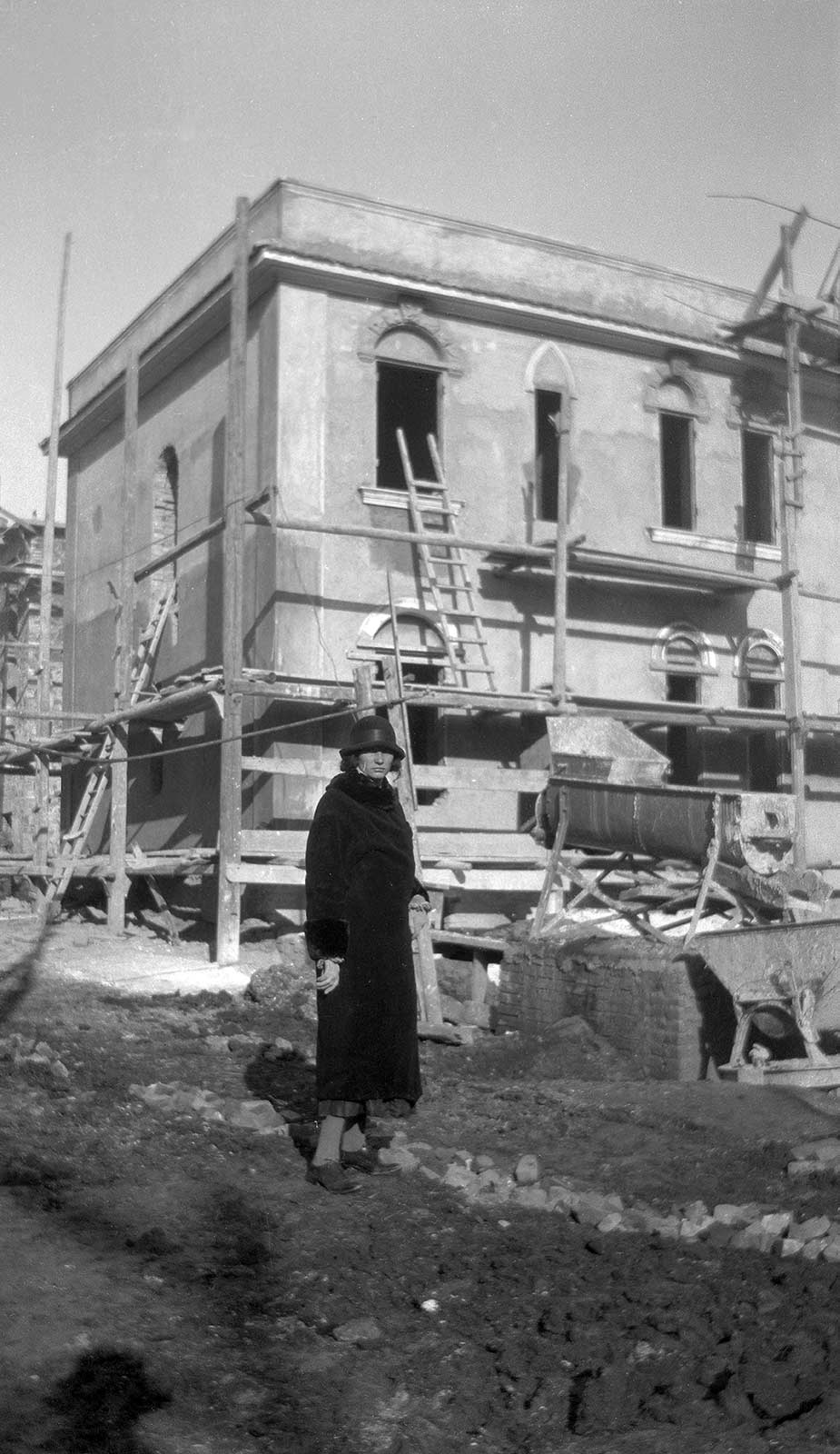 Jetta met George Arnold Escher in het huis aan de Via Alessandro Poerio 94, 20 april 1927. Op de achtergrond zijn de door Escher ontworpen tegels te zien.
